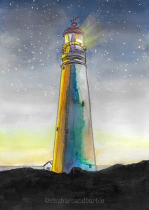 This illustration was inspired by the Artful box theme: Lighthouse from Wednesday 6th January 2021. The photo I used as my source was an Unsplash photo I found via a Google search. It is Cape Nelson Lighthouse, Portland, Australia by Joshua Hibbert and you can see it among his collection of photos.