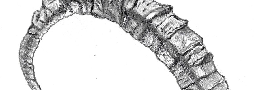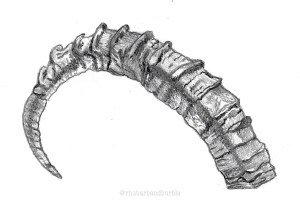 I wasn’t ready to attempt an actual animal yet, but I loved the structure of the ibex horn, so sketched this one. This was drawn with F and 8B pencils.